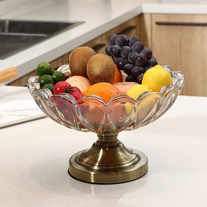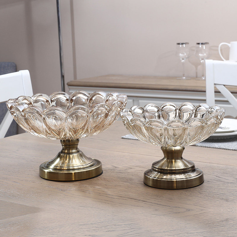 High foot fruit plate Dry fruit basin Nordic style home creative modern living room coffee table Crystal glass snack plate