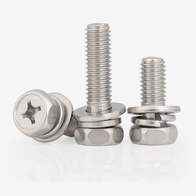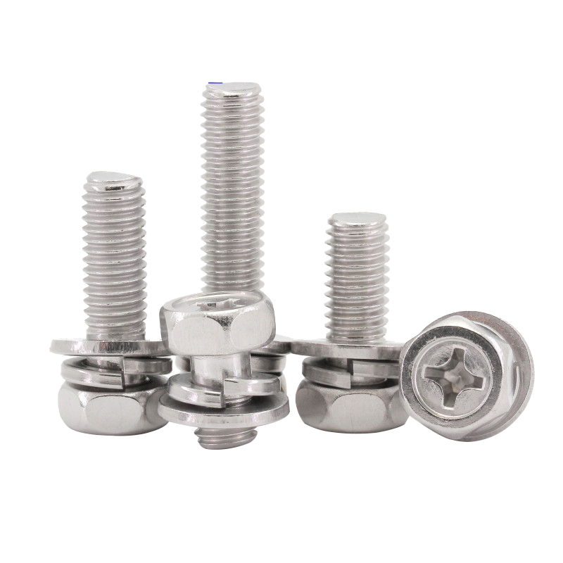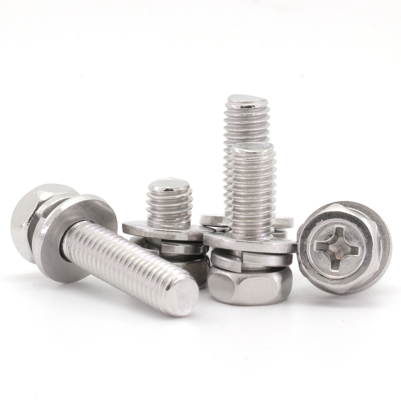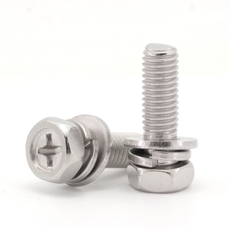 201 stainless steel cross hexagonal three combination screws with flat elastic gasket cavity combination bolt M4M5M6