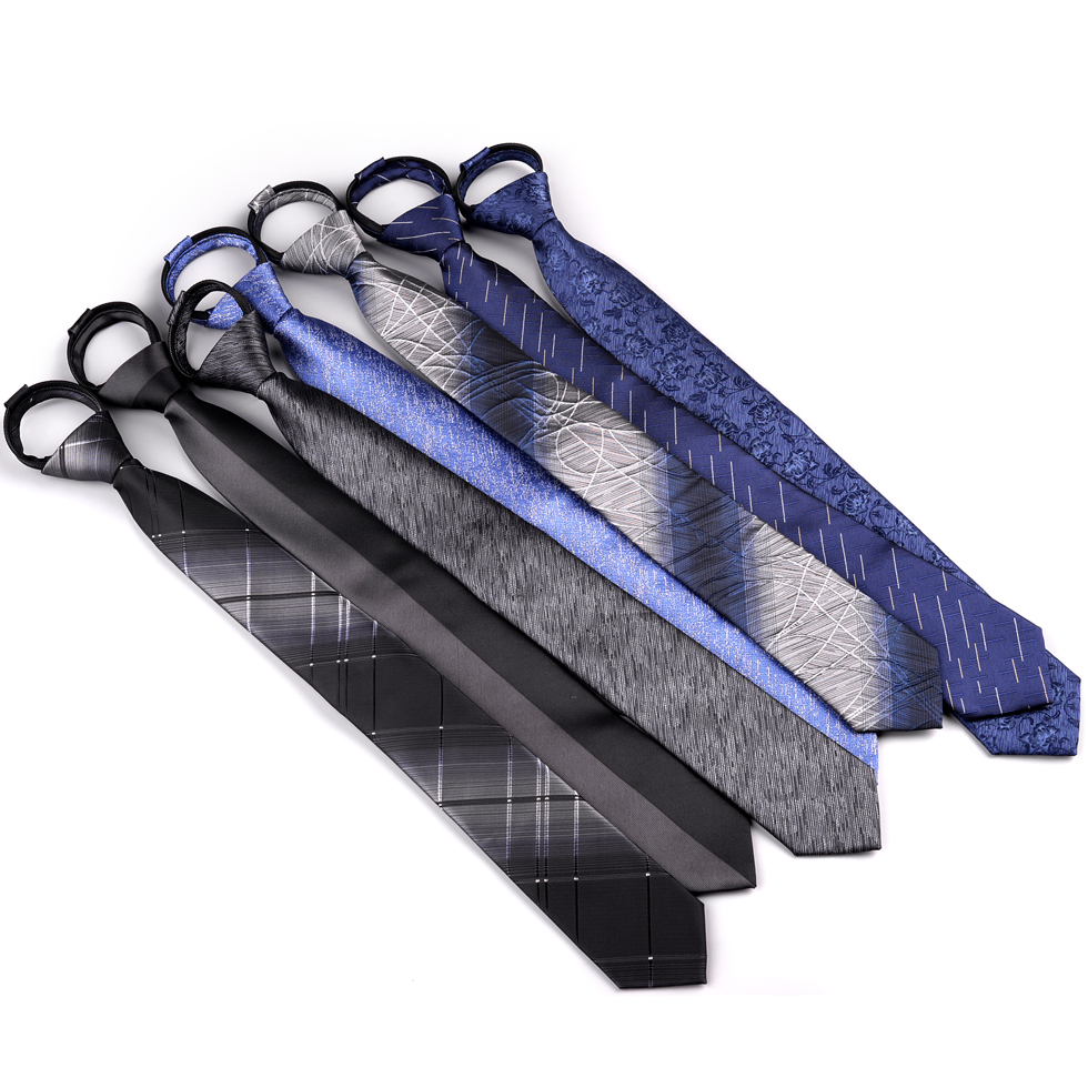 Free knot men's zipper tie fashion black work narrow tie Groom wedding business dress lazy tide