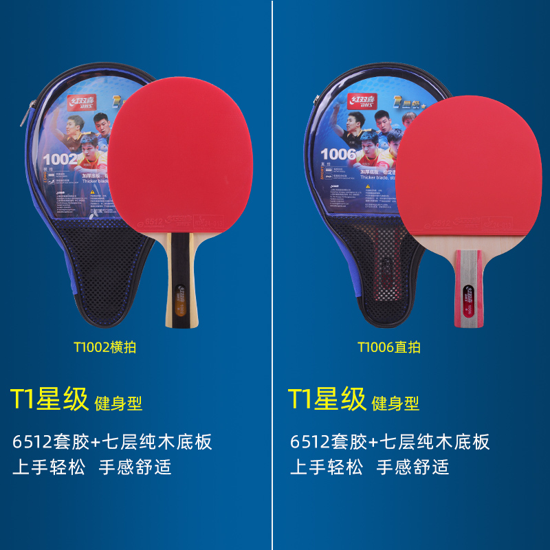 Red double happiness one-star ping-pong racket straight and horizontal shot Beginner children primary school students 1-star Bing Bing finished shot single shot