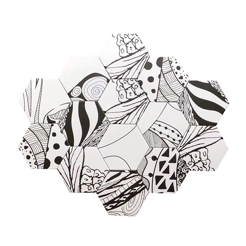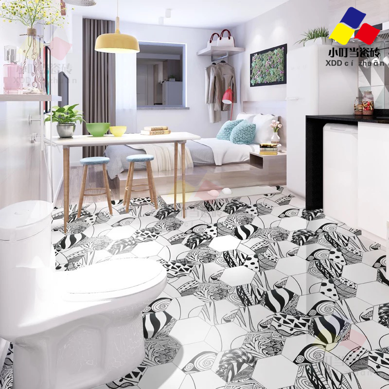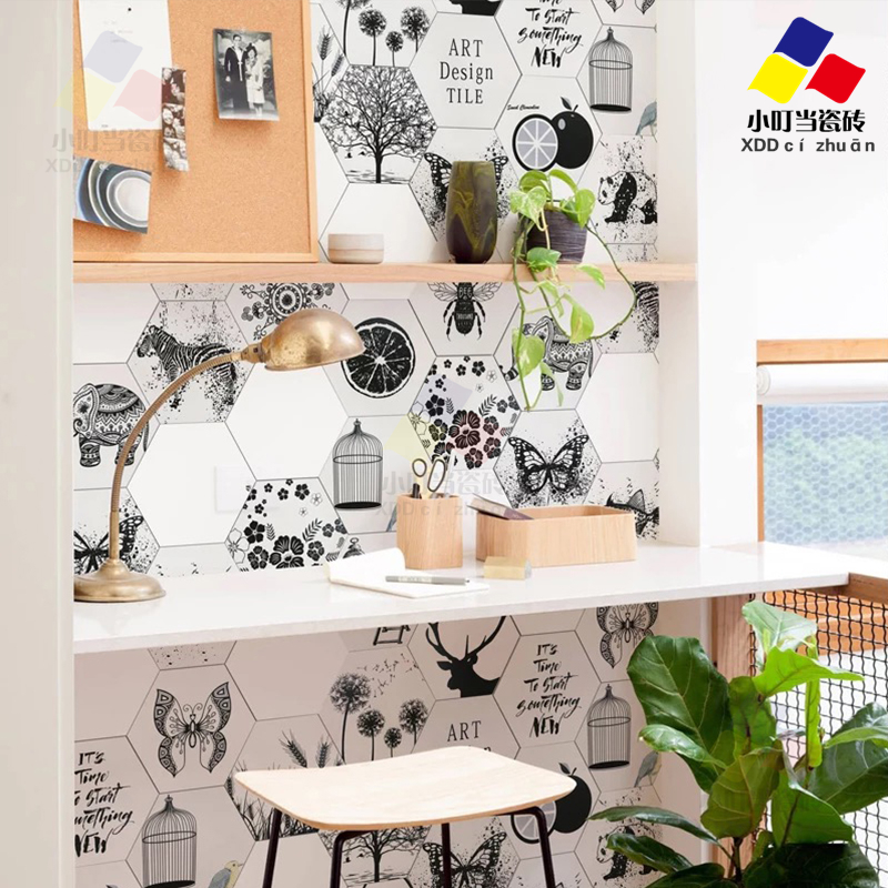 Nordic toilet jazz white tile black and white tile plant hexagonal tile kitchen balcony hexagonal wall tile