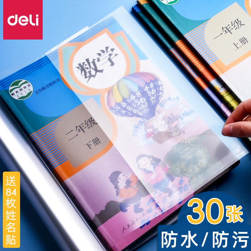 30 sheets of Deli book cover transparent primary school student first grade second grade book cover Waterproof full transparent A4 plastic book cover Book cover Book protective cover thickened 16K book cover book cover