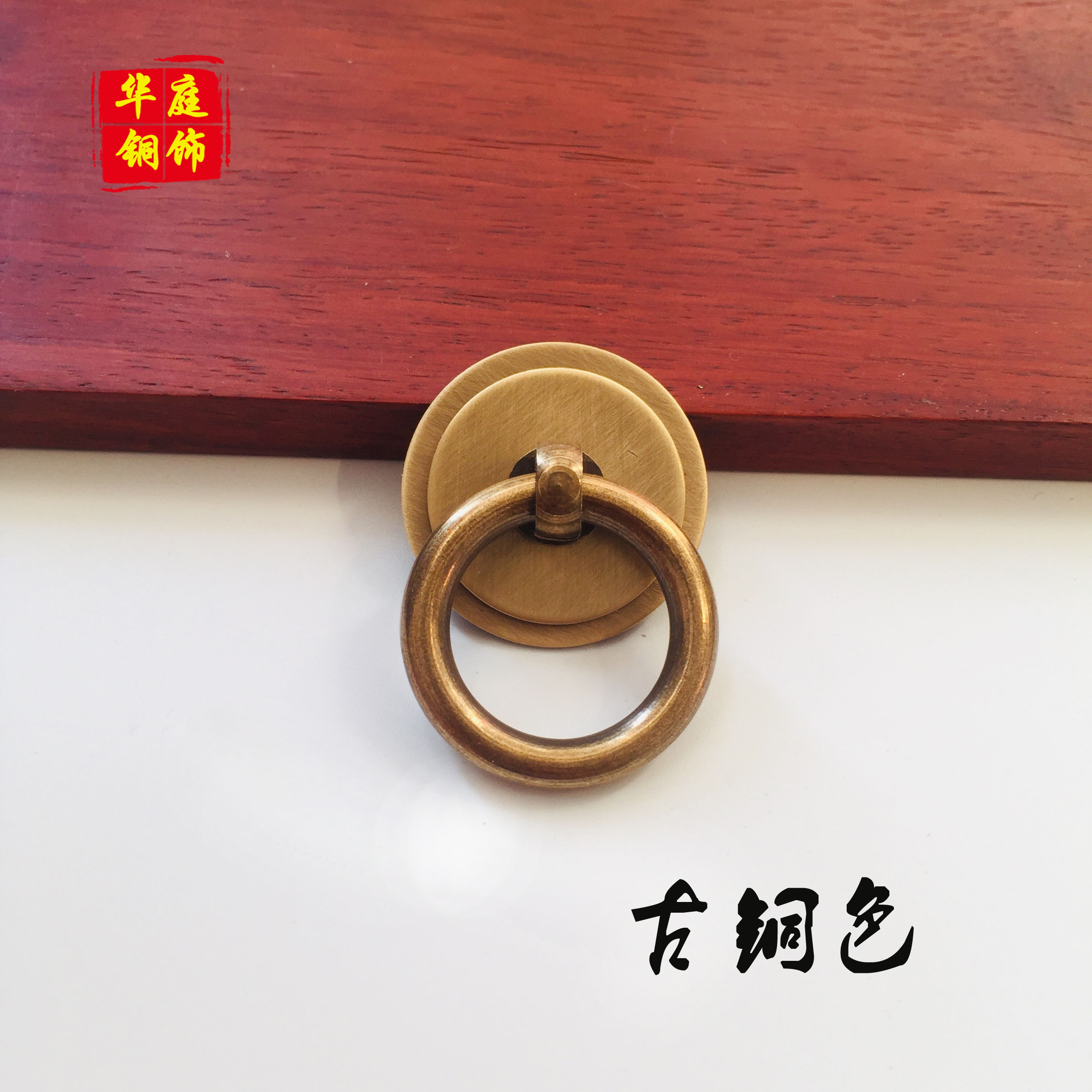 Imitation ancient pure copper Chinese handle drawer cabinet door single-hole solid pull ring traditional Chinese medicine cabinet closet cupboard retro brief copper handle