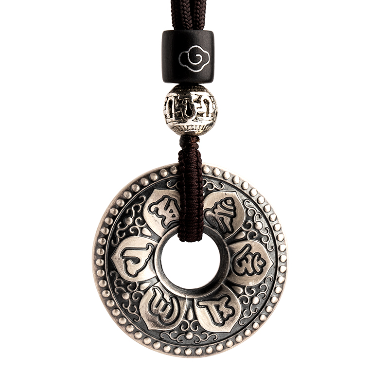 Dashan Hall 999 foot silver solid six-word mantra heart sutra peace buckle male pendant necklace female jewelry pure pendant ceremony