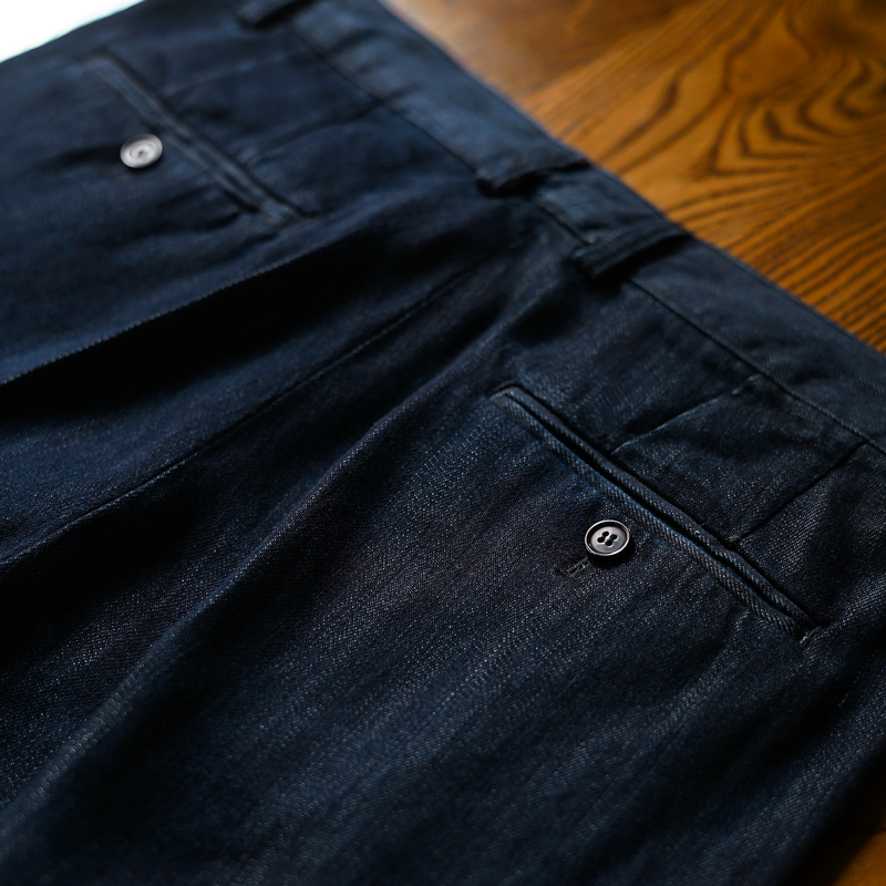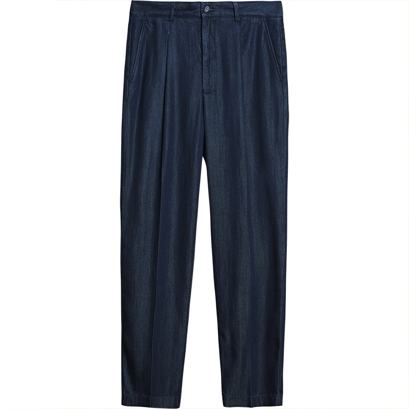 Four seasons versatile pleated denim trousers Slightly loose straight slacks Men's linen cotton blend custom fabric