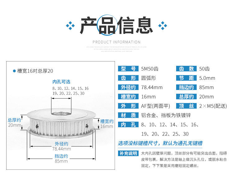 5M50 teeth-two sides flat-groove 16-inner hole 22 5M50 teeth-two sides flat-groove 16-inner hole 28 30 key 8 * 3 3 (captured message inner hole) 5M50 teeth