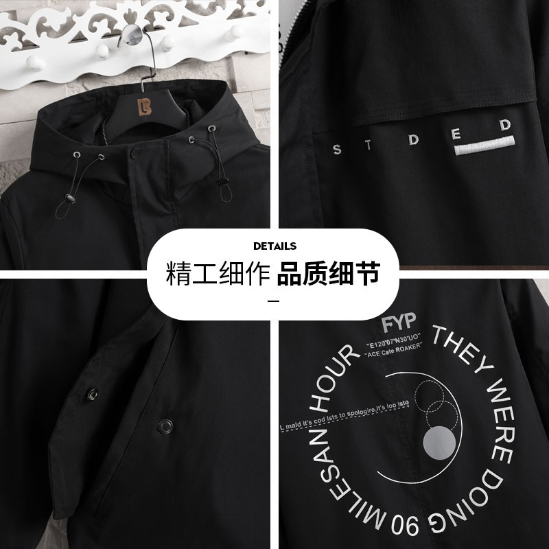 Men's windbreaker 2020 new Korean style trendy coat jacket men's spring and autumn plus fat XL fat middle-length tide