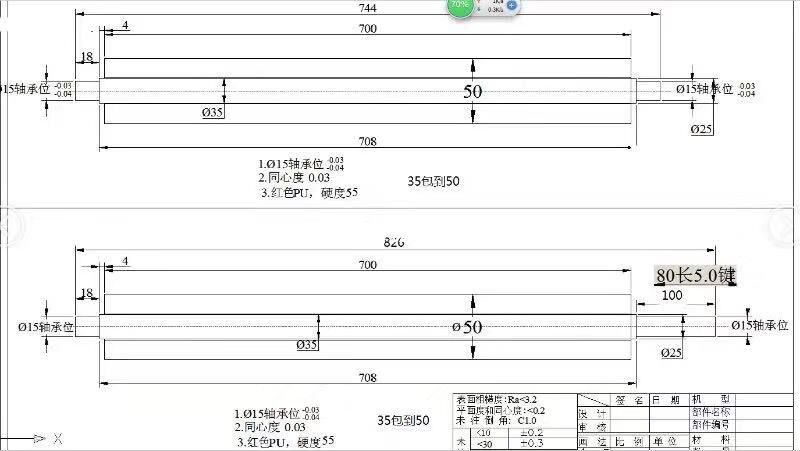 Type 500 diameter 50MM upper rubber roller 500 Type diameter 50MM Lower rubber roller 700 Type diameter 50MM Upper rubber roller 700 Type diameter 50MM Lower rubber roller coated machine Carcone diameter 2