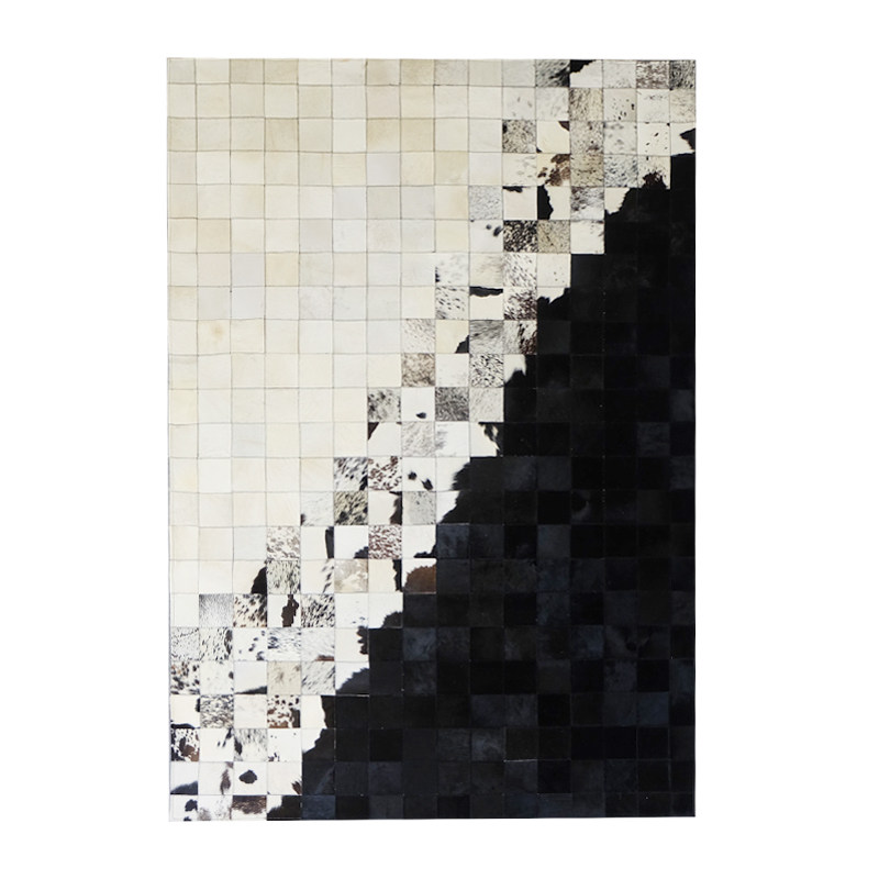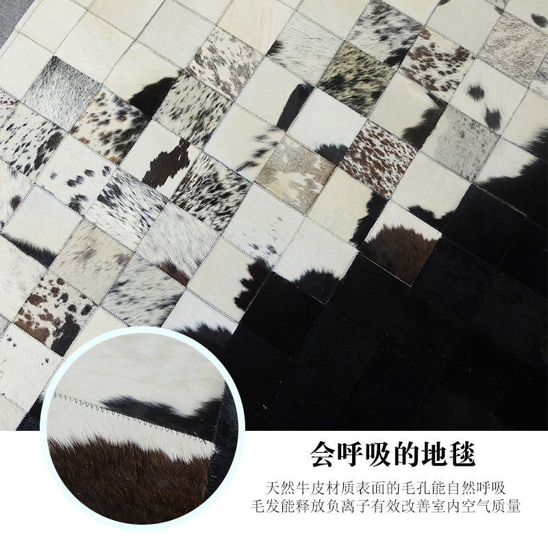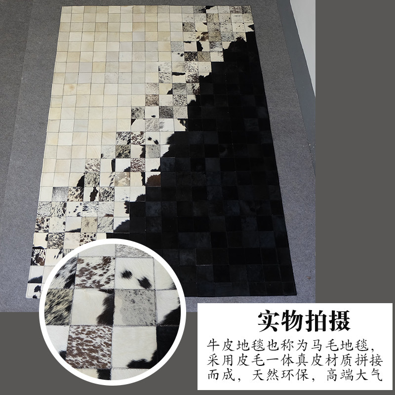 Light luxury high-end living room leather cowhide mosaic carpet horse fur dark black and white bedroom luxury handmade floor mat