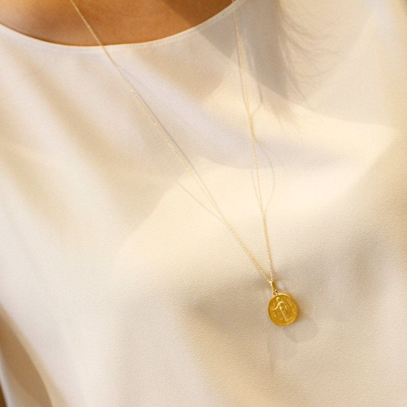 Immortal Italian import custom 18kgold T home texture long necklace sweater chain female winter
