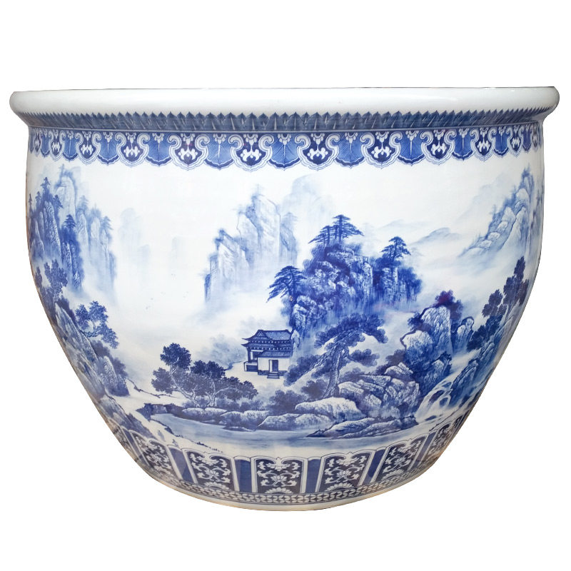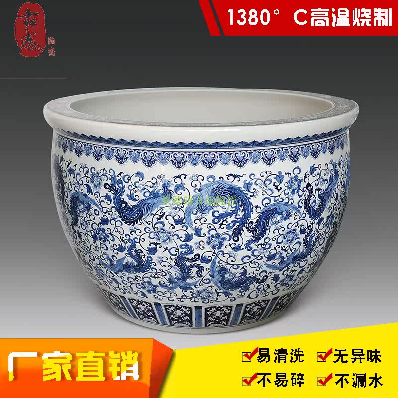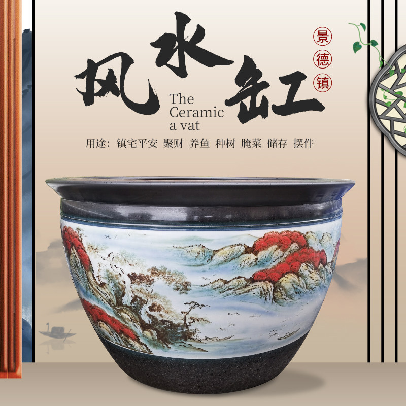 Jingdezhen Ceramic Fish Tank Large Size Large Circular Lotus Sleeping Lotus Vat Green Flower Porcelain Old Fashioned Water Cylinder Courtyard Feng Shui Cylinder