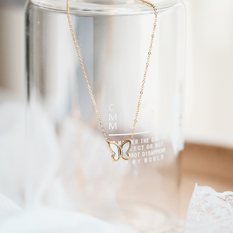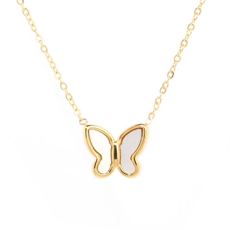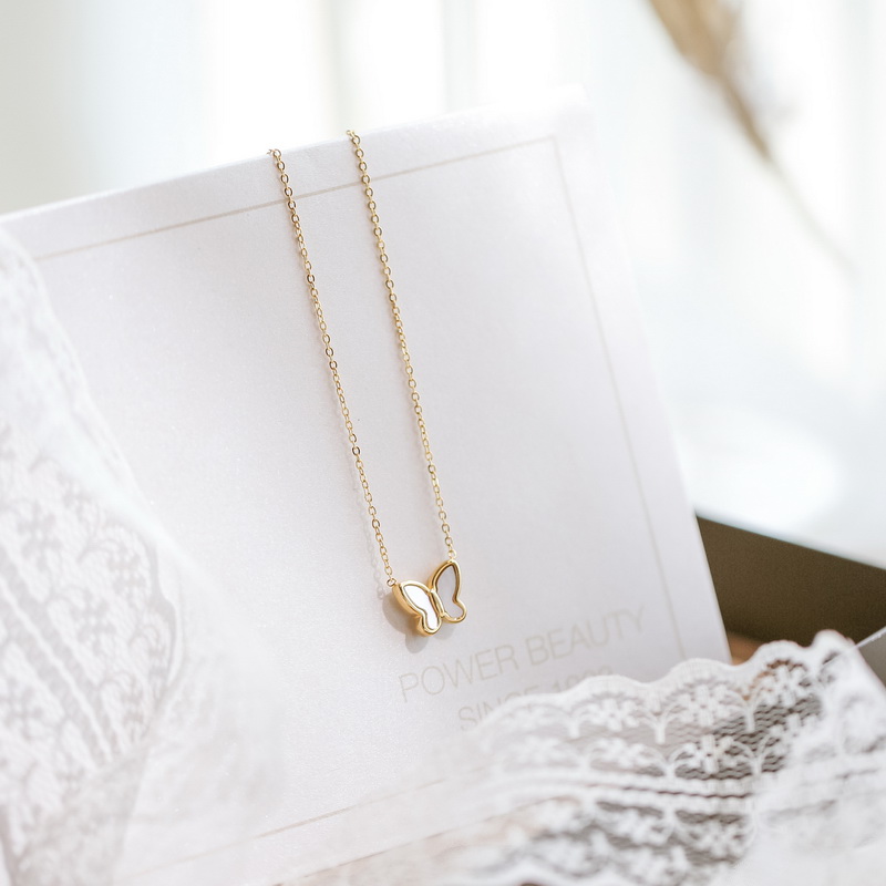 ins wind retro temperament white shells butterfly necklace collarbone chain women light and luxurious crowd not falling out of color internet red Valentine's Day
