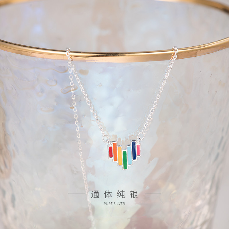 2021 New Tide Pure Silver Loving Rainbow Necklace Delicate Lock Bone Chain Pendant Ornament Small Crowd Design Sensation