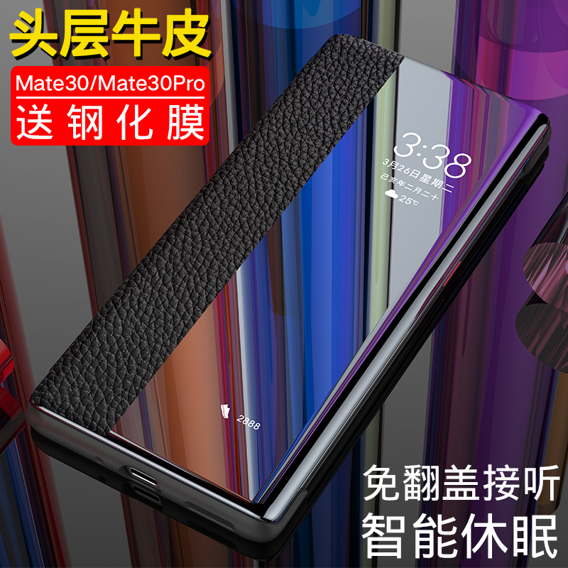 Applicable Huawei mate30 mobile phone protection shell genuine leather mate30pro flip type intelligent Windows sleeping leather sleeve p30 limited edition protective sleeve mate20 Porsche luxurious business man