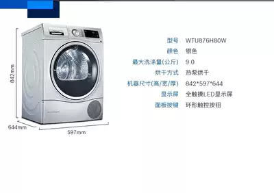 Bosch Bosch WTU876H80W imported 9KG automatic drum dryer household heat pump dryer