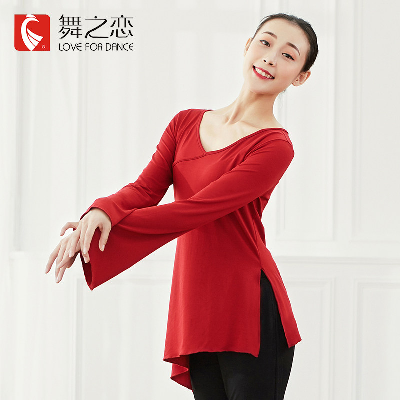 Dance Lovers Dance Costumes Ladies Autumn Winter Classical Dance Exercises for Adult Teachers Chinese Wind Long sleeves Loose Blouse