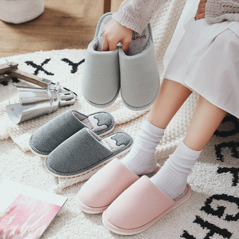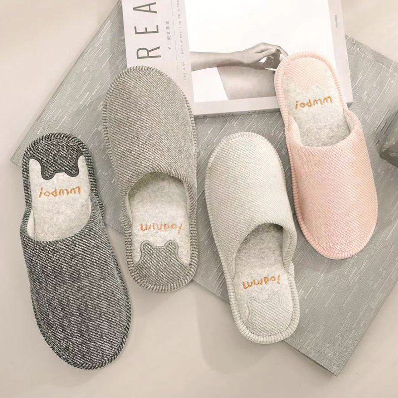 2023 New cotton slippers lady winter office Japanese thick - solid couple home household spring and autumn cloth male