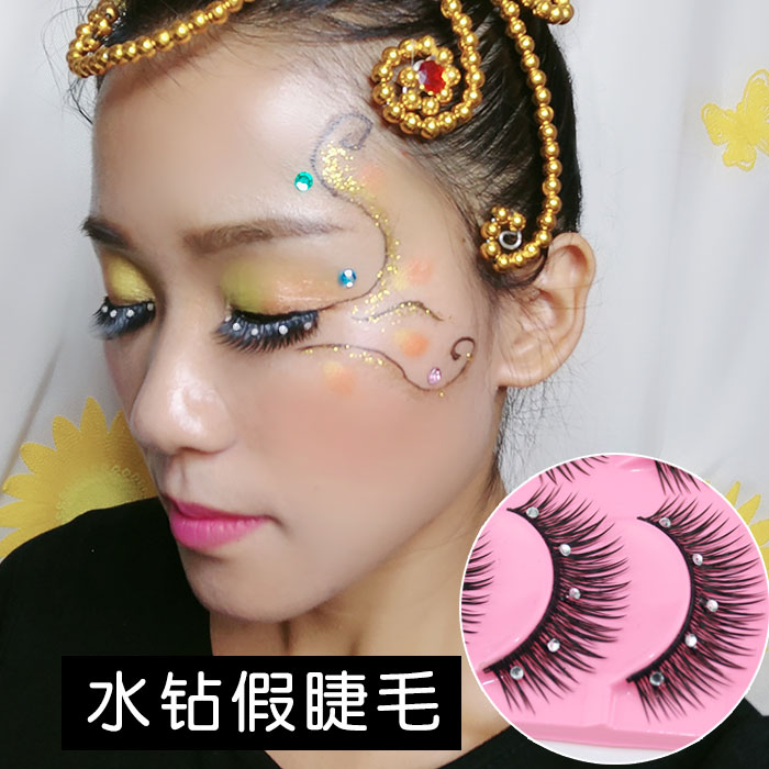 Children's adult stage makeup show with diamond-encrusted diamond false eyelashes naturally slender and thick Latin match