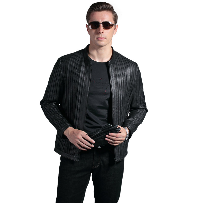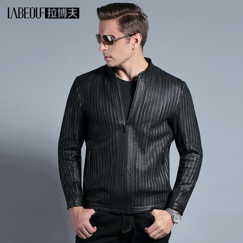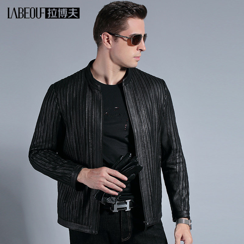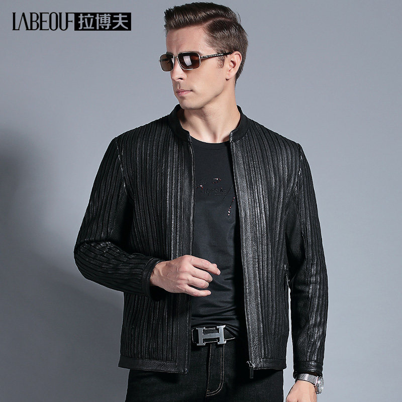 Labeouf brand leather leather men's jacket Men's middle-aged business casual biker jacket Men's middle-aged men's wear