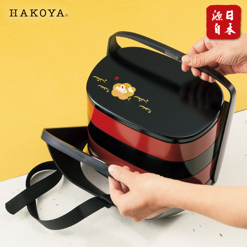 hakoya day style ancient wind lunch box with three layers of portable portable lunch box poly-meal cute adult imported dining box