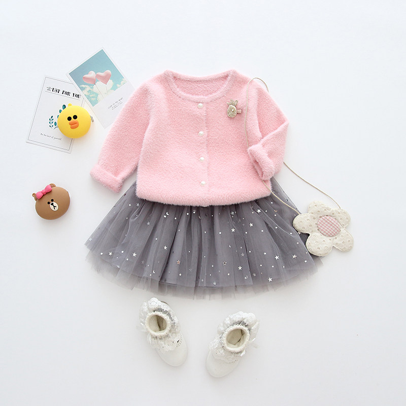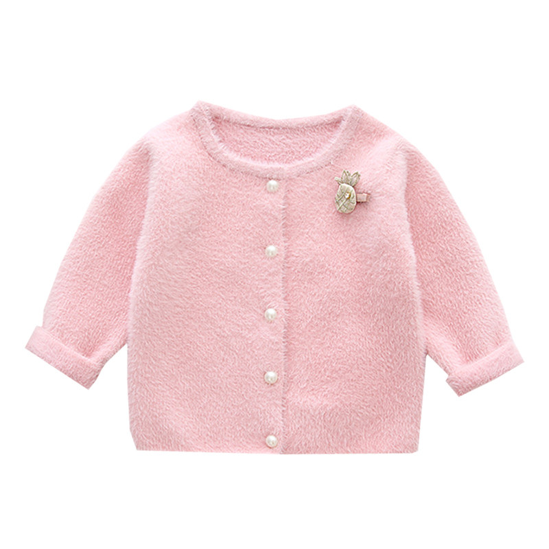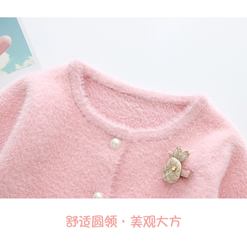 Baby girl mink fluff coat Spring and autumn baby girl knitwear cardigan Foreign princess female treasure small coat autumn section