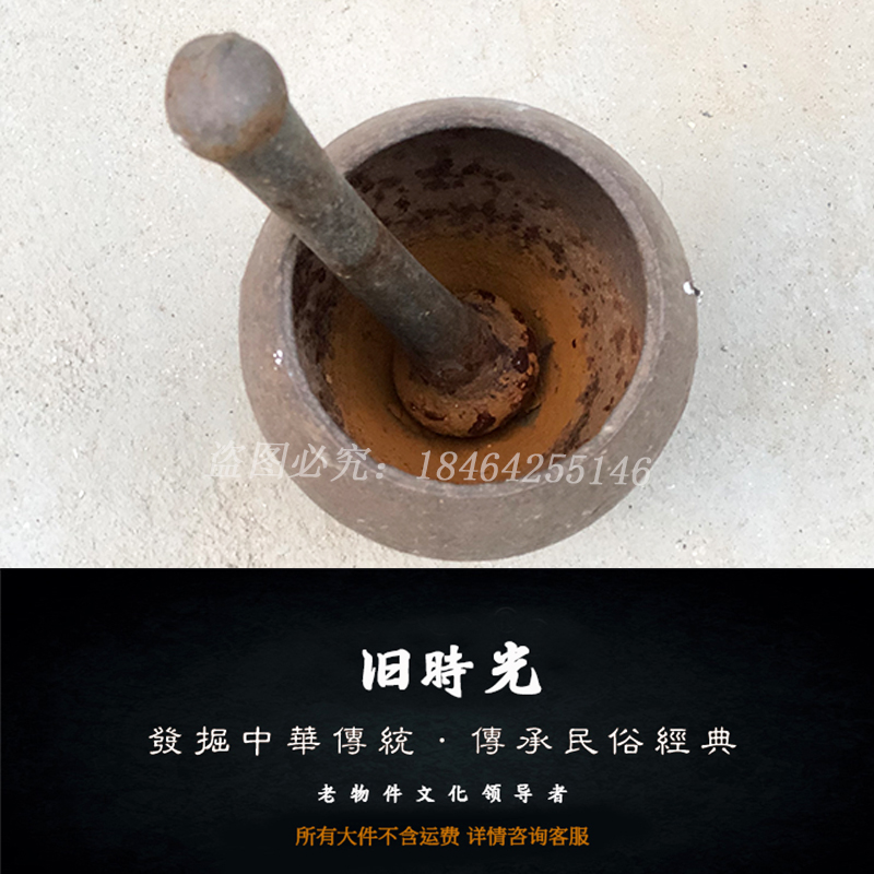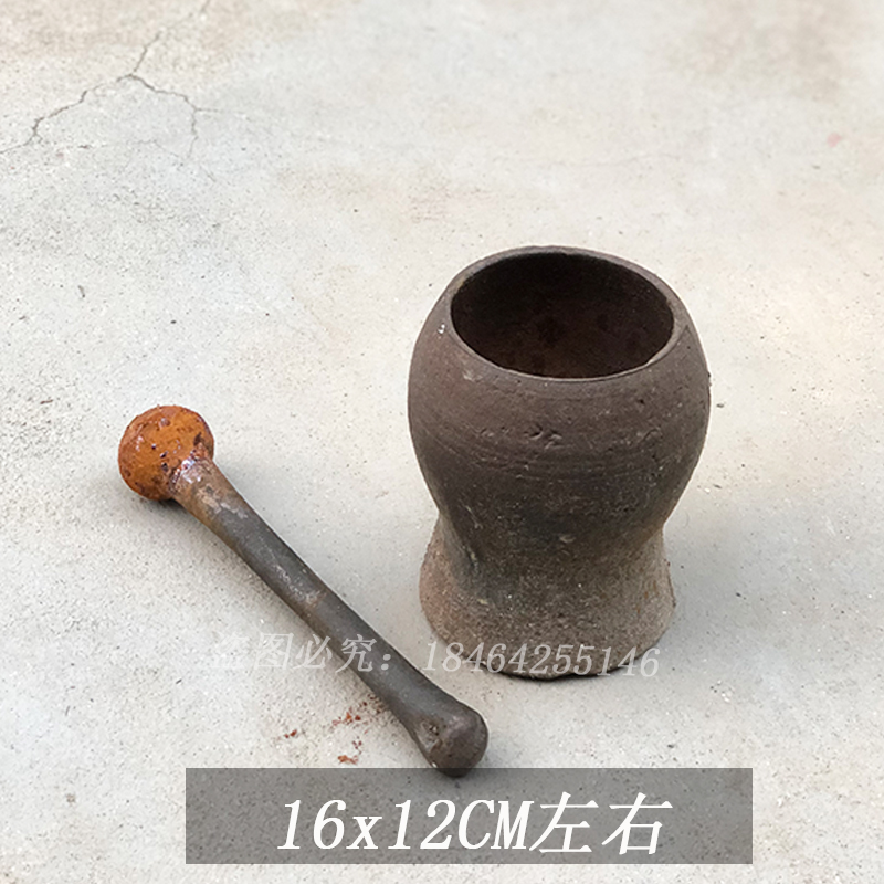 Ancient Play Collection Old Mashing Medicine Jar Ramming Vat Old Traditional Chinese Medicine Ramming Bowl Mashing Medicine Mortar Mashing and Flushing Folk Old Objects Antiques