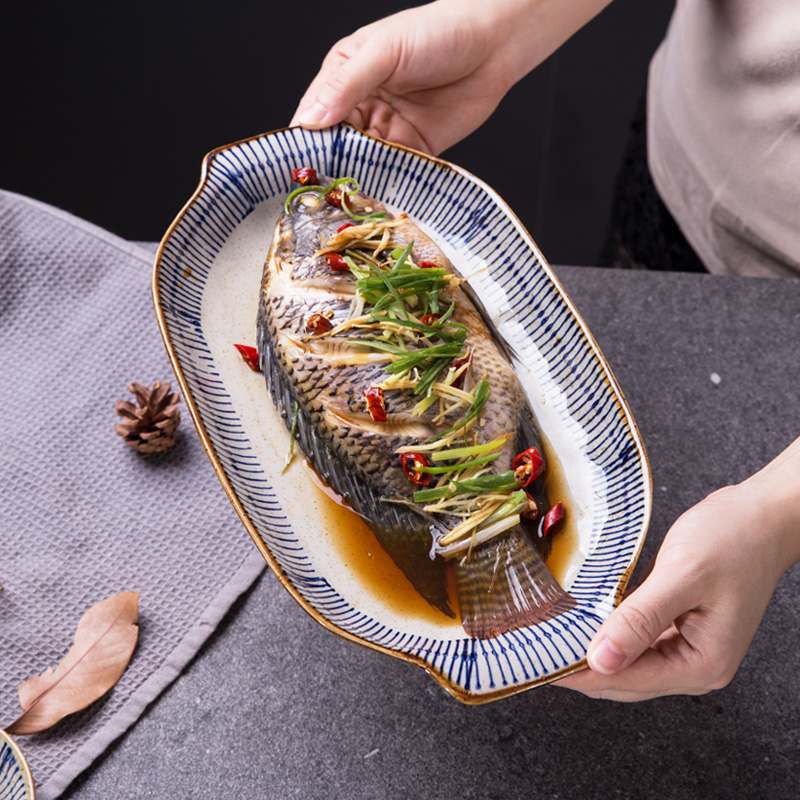 Day Style Ceramic Pan Retro Home Fish Dish Steaming Tray Dish Specialty Dining Room Hotel Hotel Business Plate