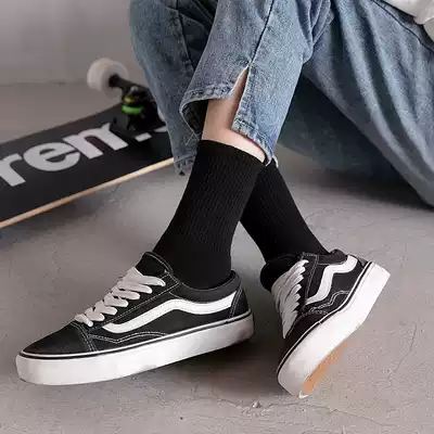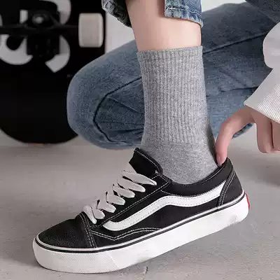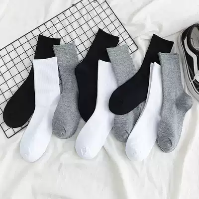 Shanju notes socks women's midline socks ins tide autumn long version of net red wild black white solid color