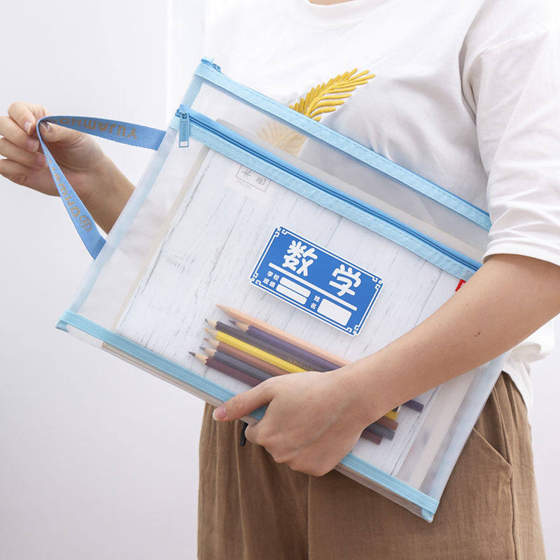 A4 double-layer student subject classification file bag homework storage bag waterproof canvas nylon language mathematics test paper bag