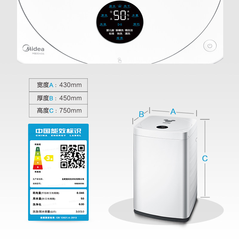 (Mini) Midea 3KG Baby Baby Kids Underwear Underwear Mini Small Household Wave Wheel Washing Machine V05