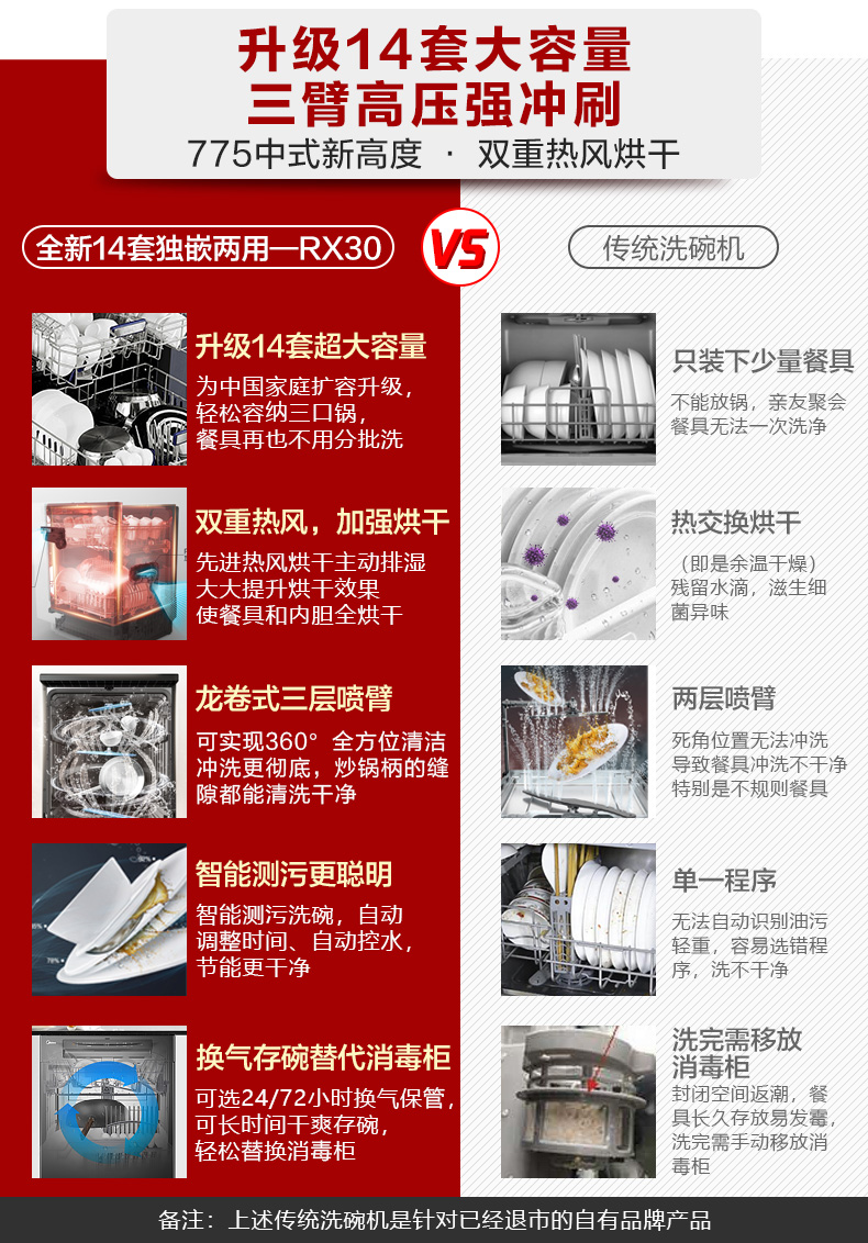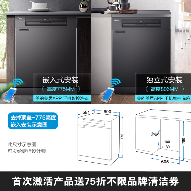 Midea RX30 dishwasher automatic household 13 1 set single-embedded dual-purpose disinfection hot air drying intelligent all-in-one machine