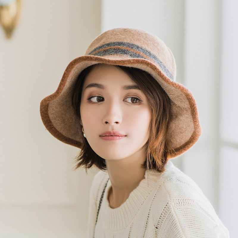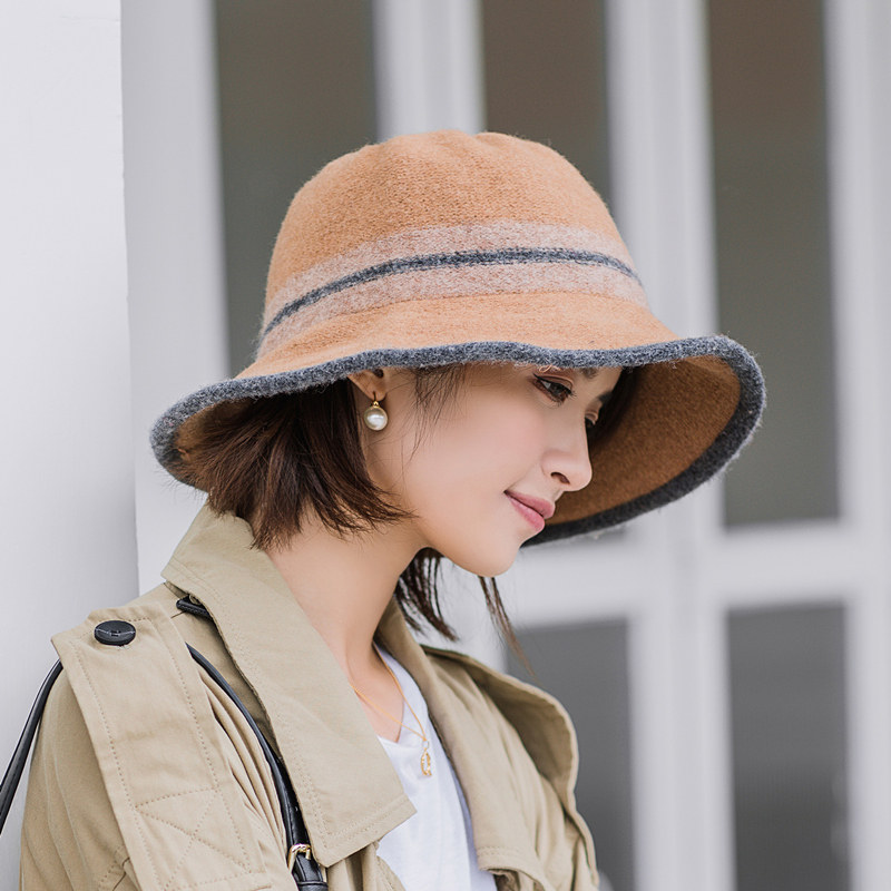 Woolen basin hat women's autumn and winter fisherman hat Korean version of the British top hat dome Japanese wild knitted wool hat