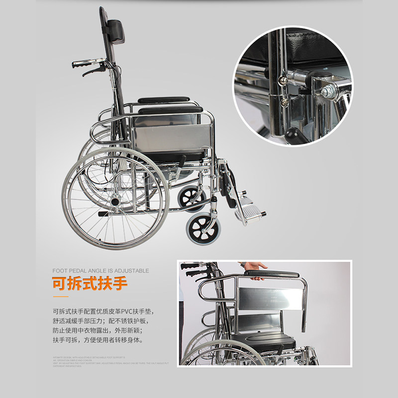 Removable rear-slip high backrest full lying high backrest half lying with toilet with hand brake armrests