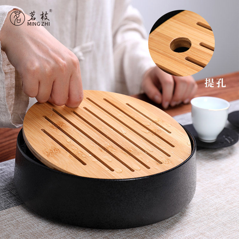 Tea drinking water storage dry tea table made of bamboo round tea tray Brief about home Ceramics Entrusted Pongfu Tea With Tea Sea Retro
