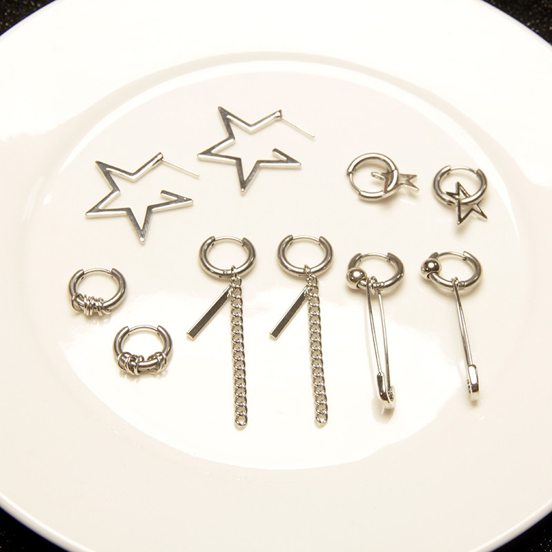 2019 European and American small crowd designs a variety of cold style five-pointed star pin earrings personalized punk hip-hop titanium steel earrings