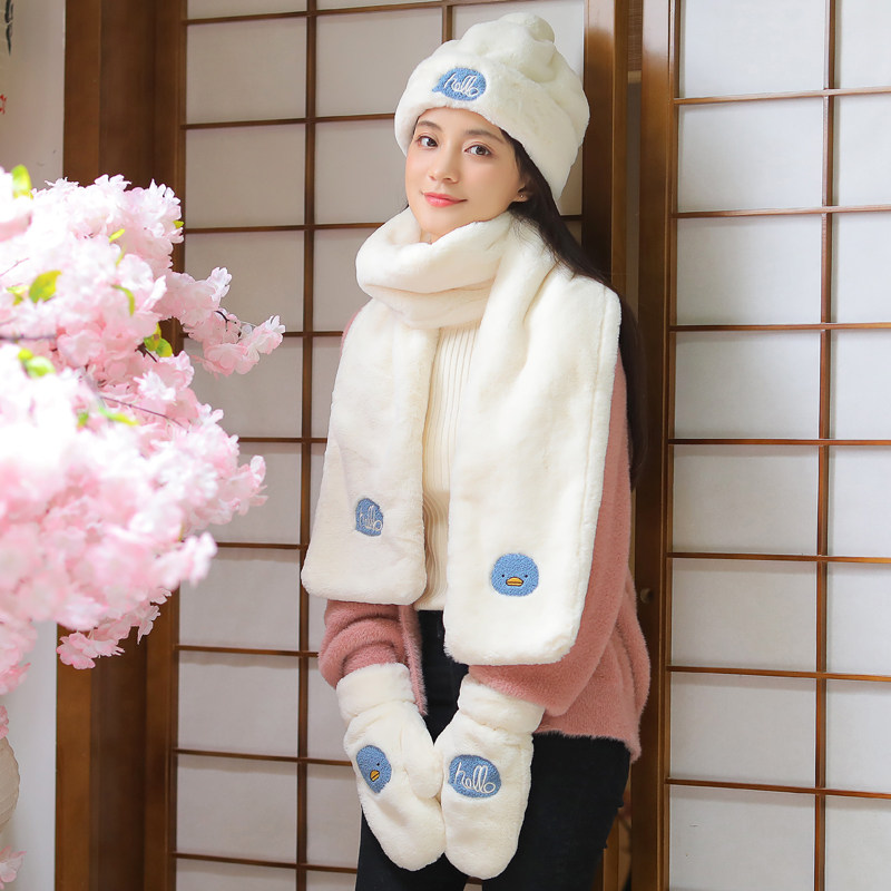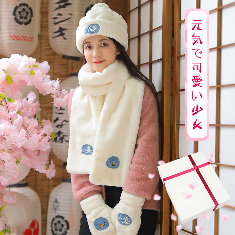Hat scarf gloves three-piece set all in one girl winter bib neck winter birthday gifts keep warm winter Valentine's Day