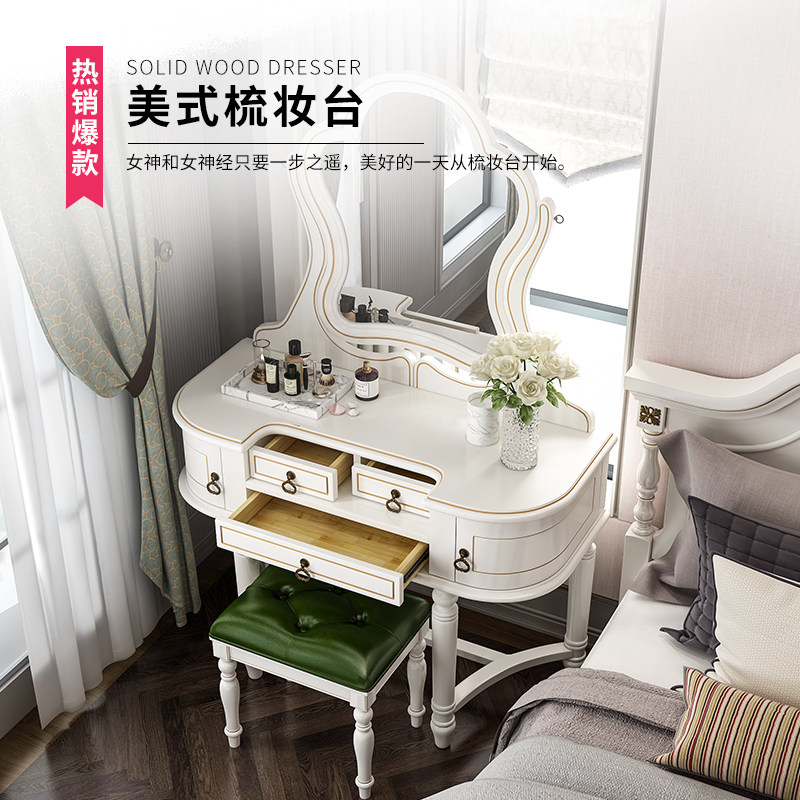 Kalera American dressing table Bedroom Modern simple solid wood dressing table Dressing table Small apartment dressing table