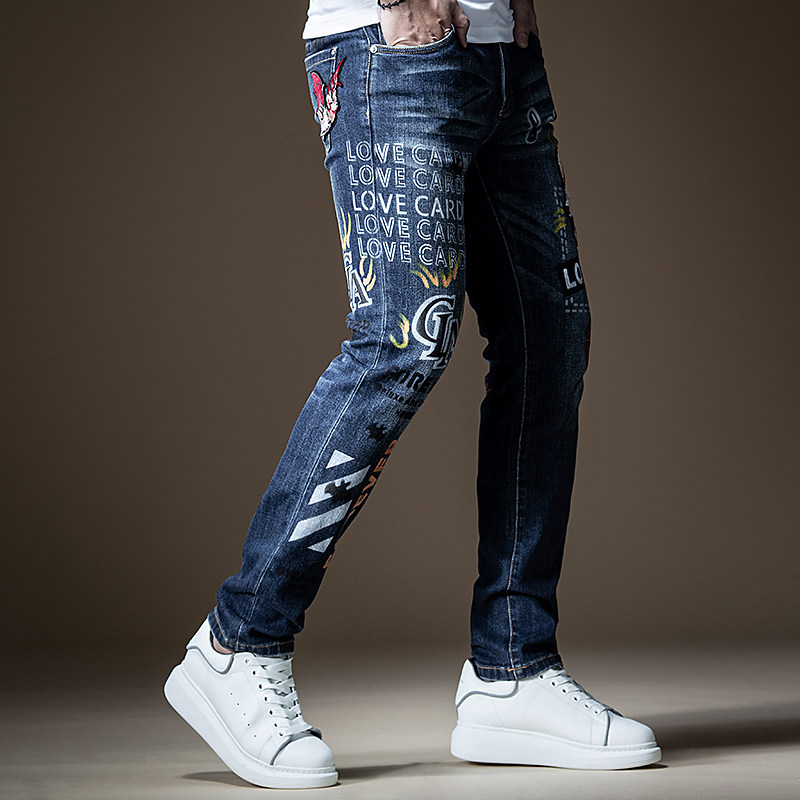 BM men's whitening retro fox embroidery jeans men's tide brand letter printing street trend Korean version of hip hop