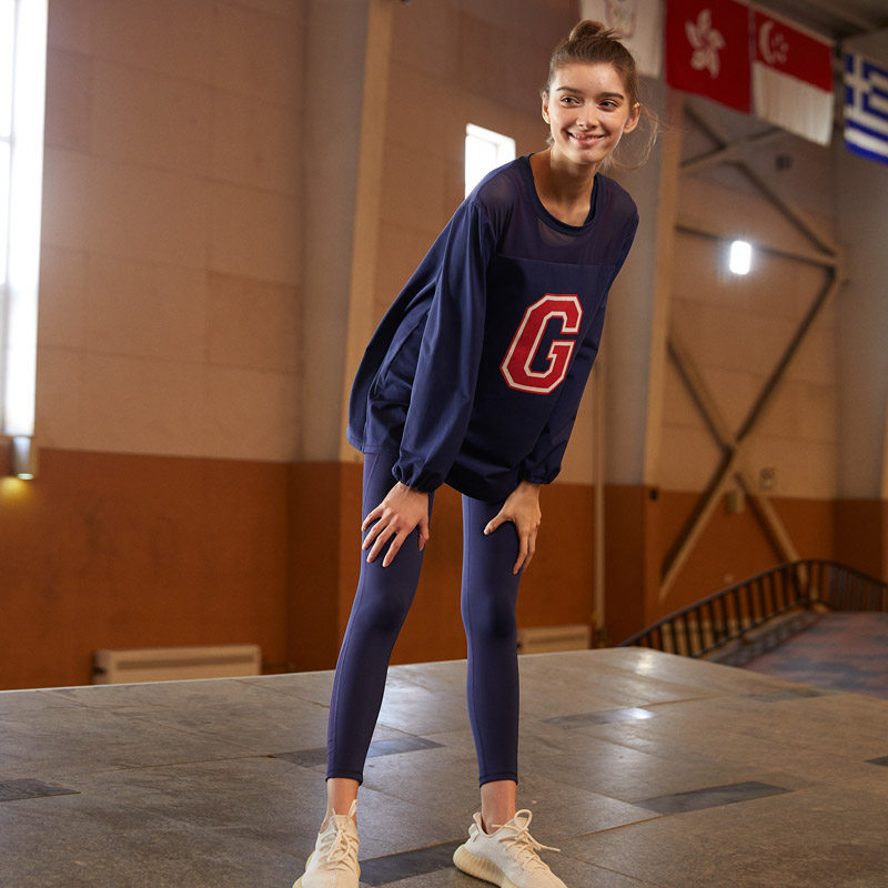 gymna retro college style long-sleeved sports T-shirt women loose breathable net red quick-drying yoga fitness clothes blouse women