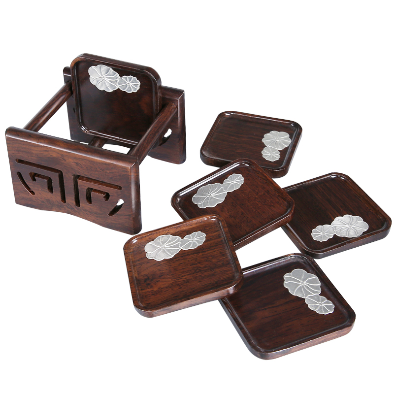 Ebony solid wood tea mat coaster Tea cup mat Tea ceremony Kung Fu tea cup holder Tea holder Creative tea set accessories Heat insulation cup holder