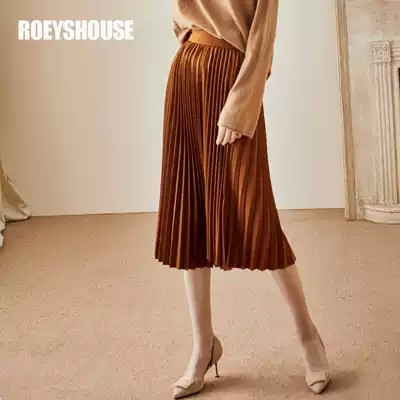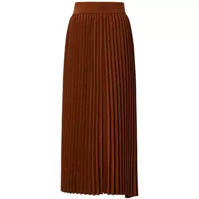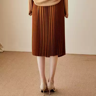 Luo Yi elegant big pendulum solid color skirt autumn clothes New temperament commuter light curry long pleated skirt 00775
