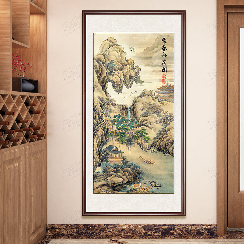 Rich Spring Mountain Gutu Cross Stitch Embroidery 2022 New Xuanguan Vertical version landscape painting Wind scape painting 2021 Full embroidered living room
