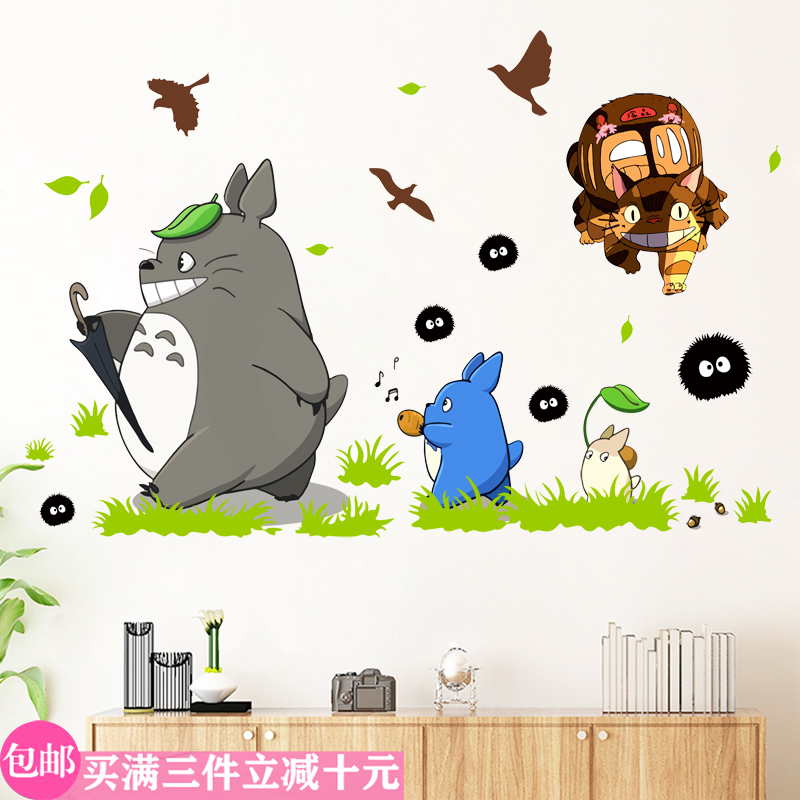 Day-style wall sticker Miyazaki Miyazaki Cat Bus Cartoon Tennis Red Ins Glass Decorated Teenage Girl Hearts Dorm Placement Stickers