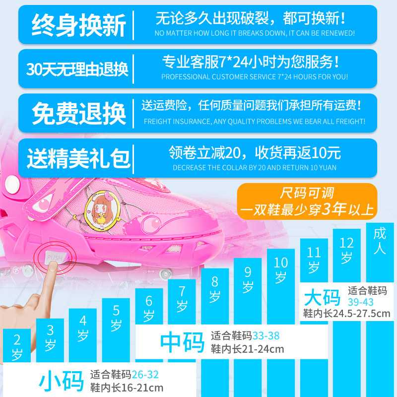 Small size (suitable for shoe size 26-32)Eight-wheel full flash Medium size(suitable for shoe size 33-38)Eight-wheel full flash Large size(suitable for shoe size 39-43)Eight-wheel full flash Small size(suitable for shoe size 39-43) Eight-wheel full flash Small size (suitable for shoe size 39-43) Eight-wheel full flash Small size (suitable for shoe size 39-43)