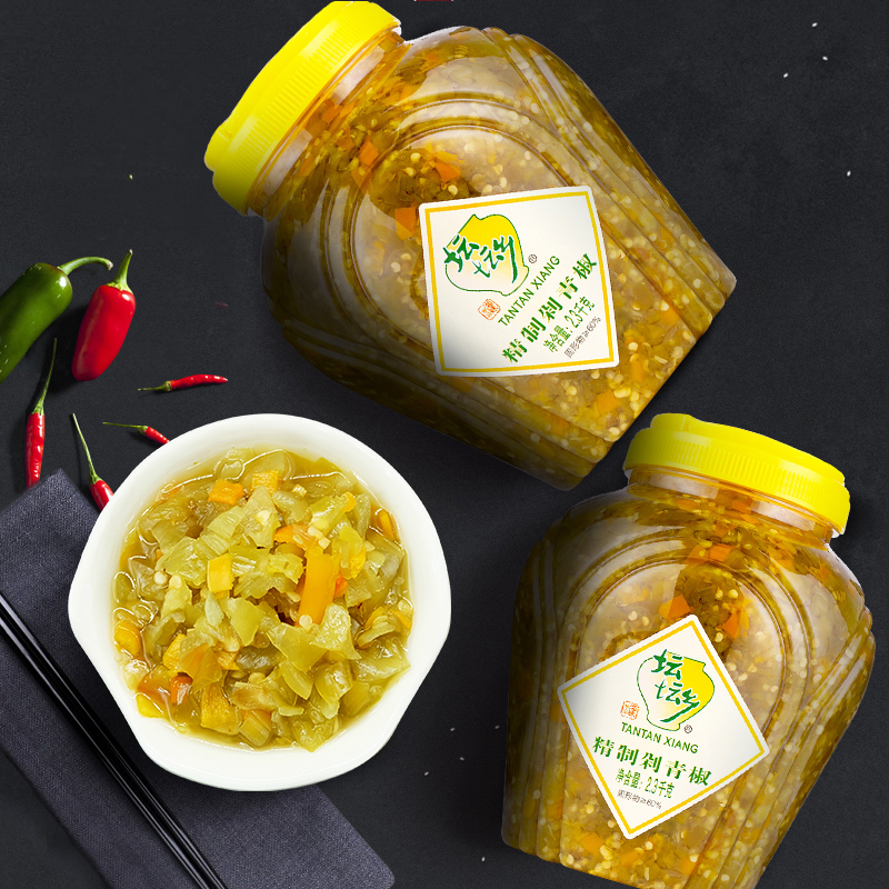 Tantan Township Crispy Fresh Chopped Green Peppers 2 3kg Large Bottle Chopped Peppers Fish Head Spicy Chili Sauce Bibimbap Green Chopped Peppers