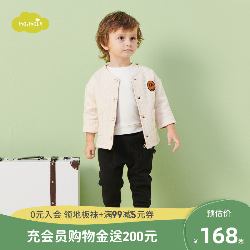moimoln small clouds children's clothing Men's and women's children's spring and summer cardigan children's baby cloth label solid color round neck jacket