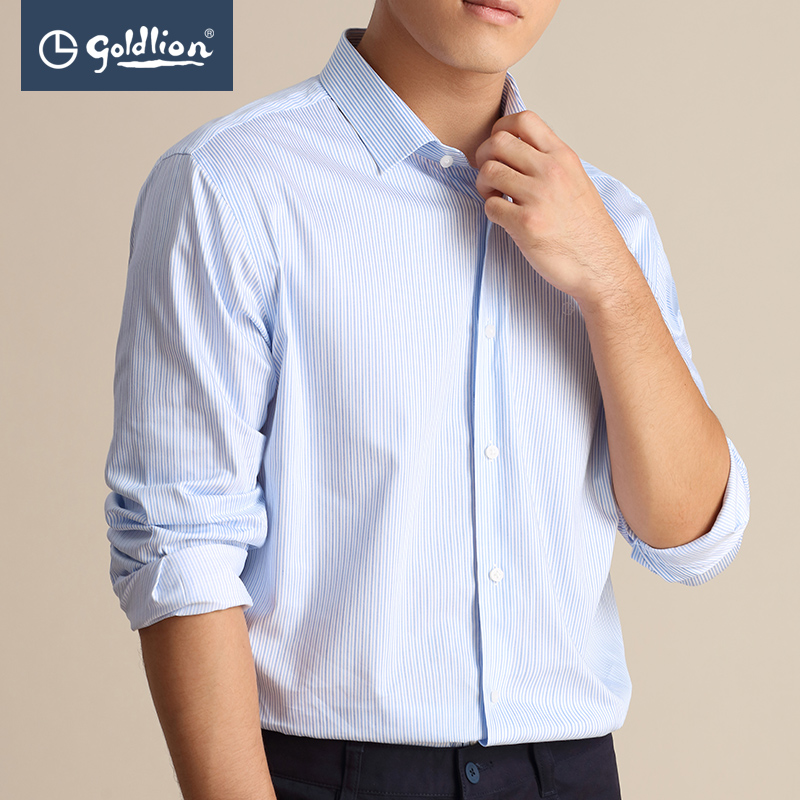 Jinlion Spring & Autumn Men's Soft and Comfortable Stripe jacquard Business Long Sleeve Shirt Loose Edition XL (Hui)