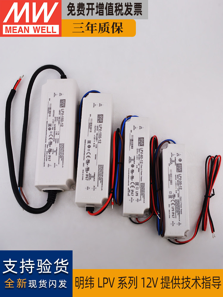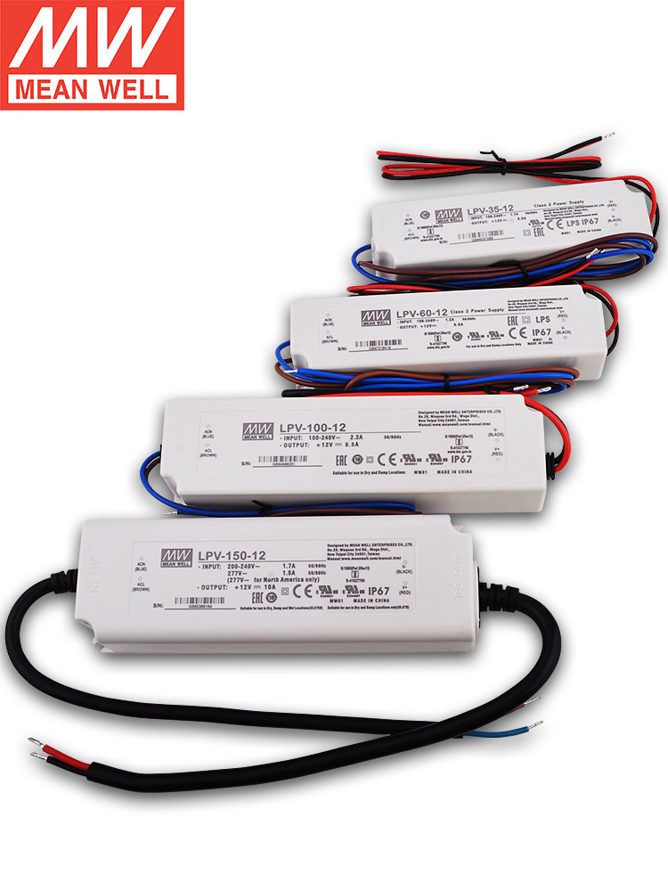 Mean Well LPV Outdoor IP67 waterproof switching power supply 35W 60 100 150W LED driver to 12V10A