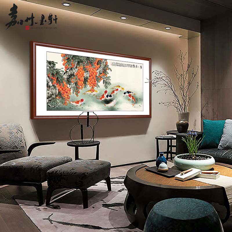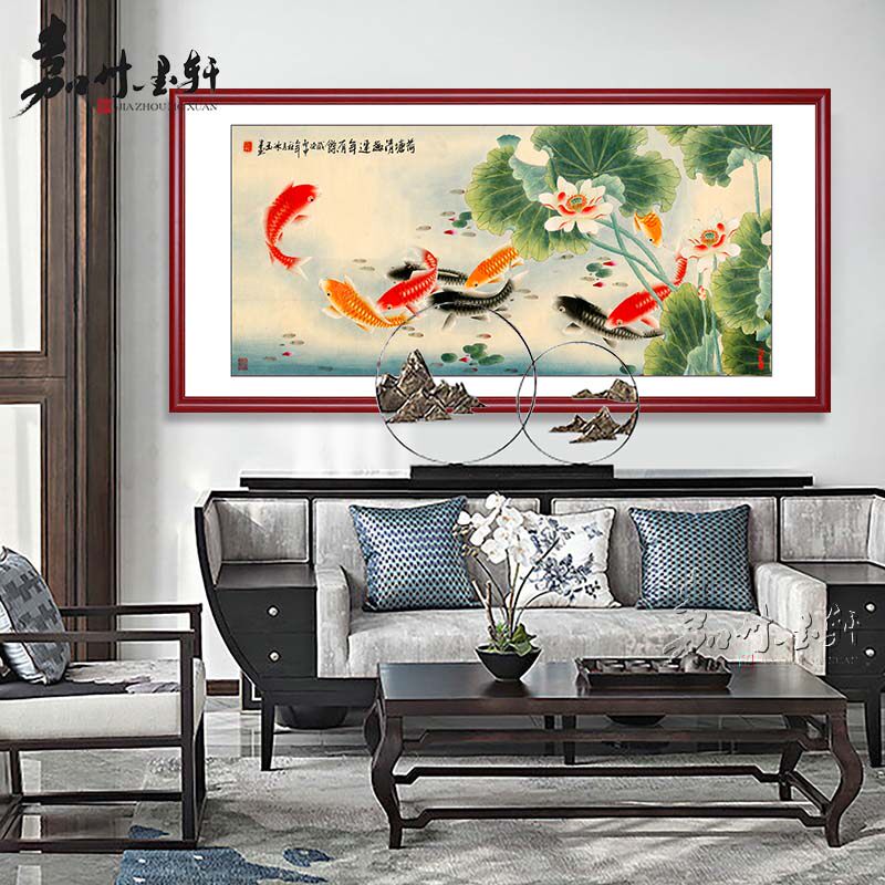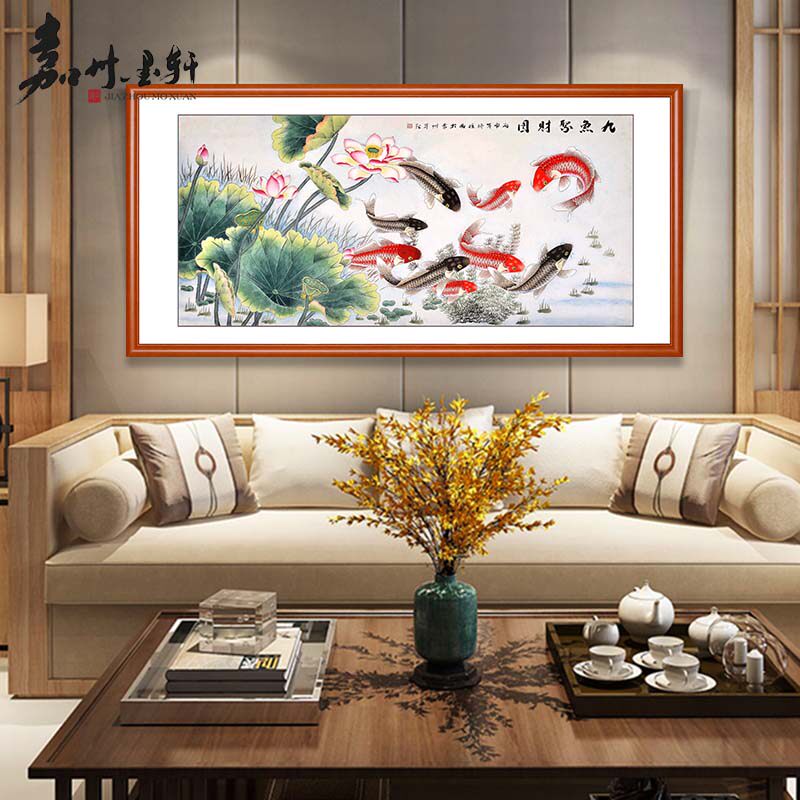 Nine Fish Painting Wind Water Trick and Hang Painting Nine Fish Plot Decoration Painting Living-room Sofa Background Wall Polychaewall Painting Lotus Plot