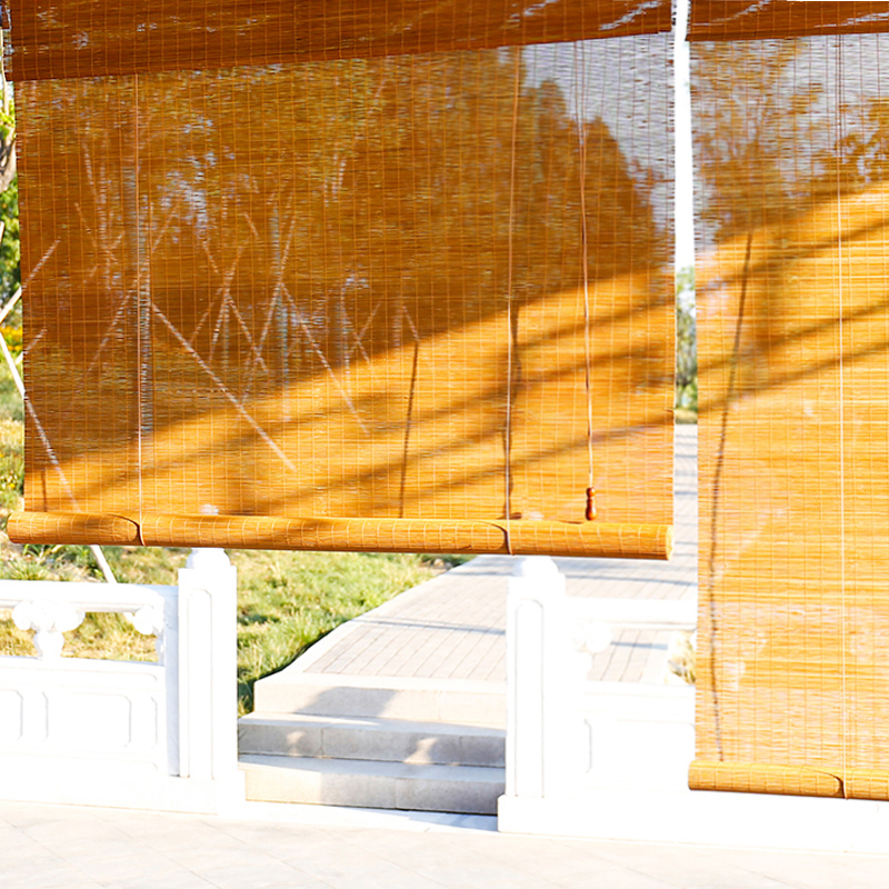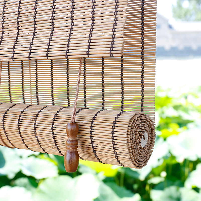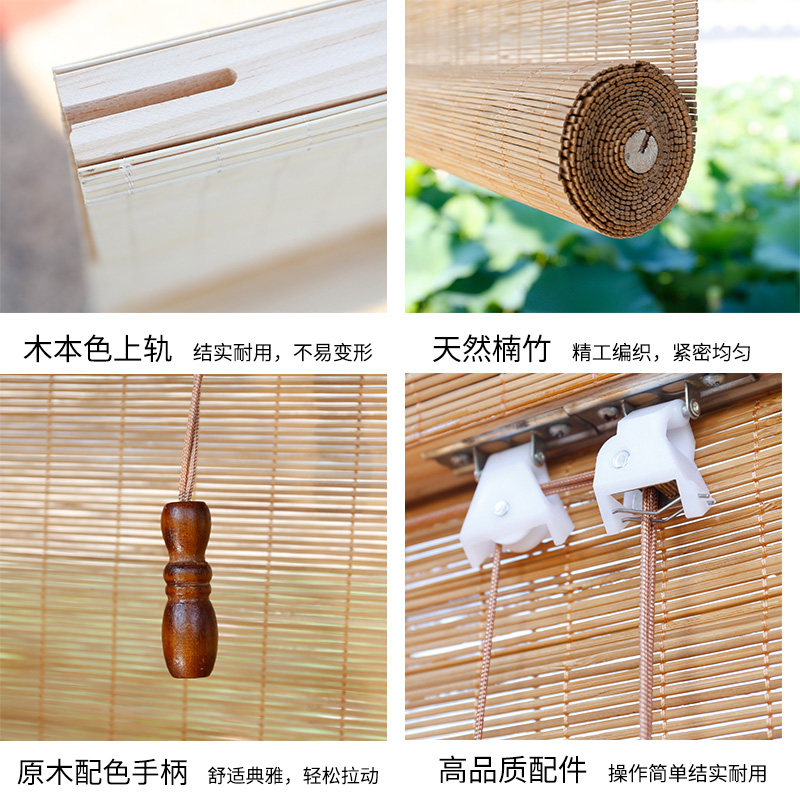 Chinese style bamboo curtain roller shutter lifting shading and shading tea room balcony make-up room windows shielded waterproof hand-pulled curtains